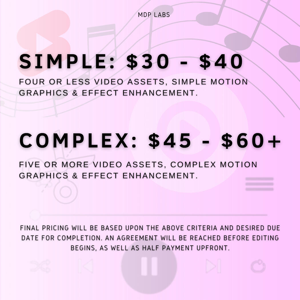 Videos are created and composited within Sony Vegas Pro and Adobe After Effects.
